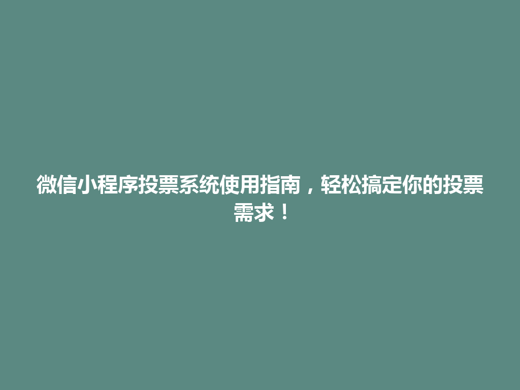 豆包网 微信 蒸湘区微信小程序投票系统使用指南,轻松搞定你的投票需求!